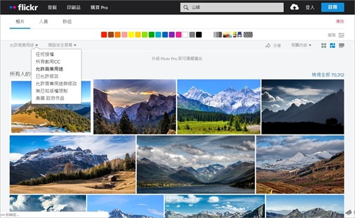 比如搜索山峰,出来的无版权的图片,非常精美,质量都非常高。
