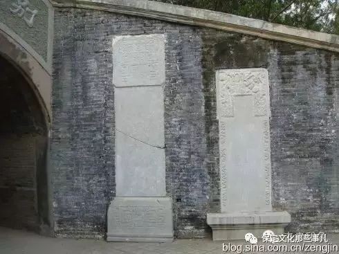 (曹锟花园遗迹别有洞天)门洞右手两块石碑分别为曹锟建园所立和抗日名将宋哲元修缮人民公园所立