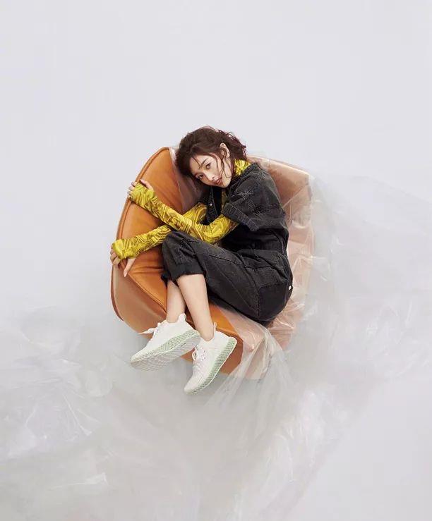 除了大胆的泳装,其他的造型相对比较保守,风格是比较统一的撞色。黑色的连体工装裤,搭配明黄色的长袖,躺着地上的吴宣仪,还对着镜头甜笑,看着有几分调皮的感觉。时尚大片也不一定要很酷炫,吴宣仪这样的甜笑也很让人心动啊,撩粉技能十级。