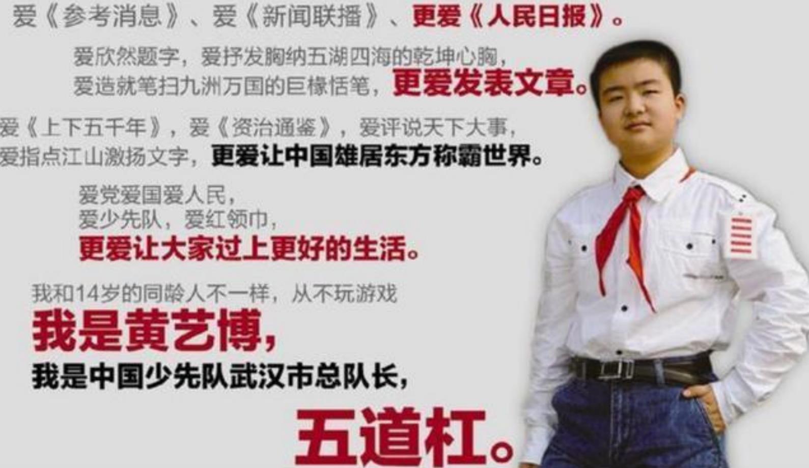 黄艺博曾经是武汉市少先队的副总队长,所以他才有了五道杠的身份。