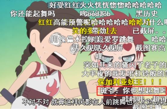 一想到和鸣人跳舞的情景,我爱罗有点动摇起来,弹幕此时也一片沸腾,大家对我爱罗跳舞的情景都很期待,一些喜欢玩梗的粉丝还发出疑问:你也想起舞吗?好在这话时粉丝问的,如果是斑爷问的话,那就玩完了,别说办婚礼,能否守住忍界都是一个问题。