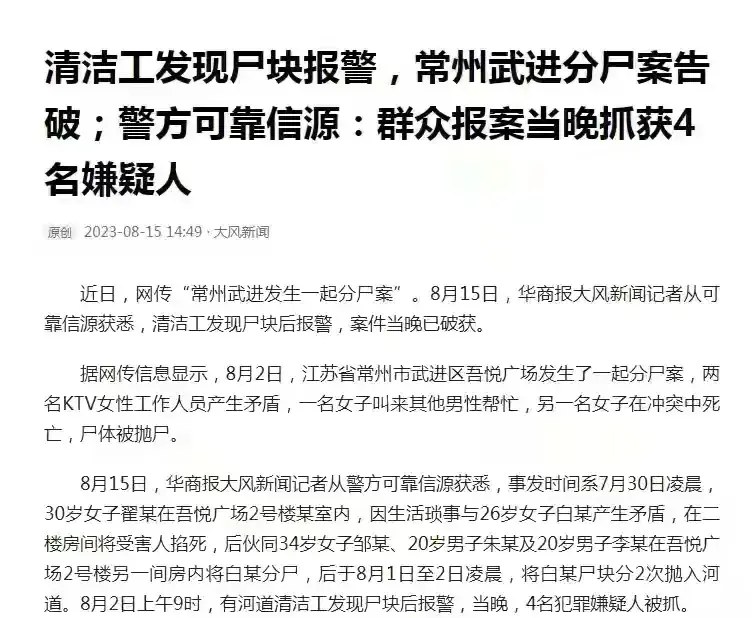 近日,有网友爆料称,常州发生了一起残忍的分尸命案,这一消息引起了很多网友的关注和讨论。