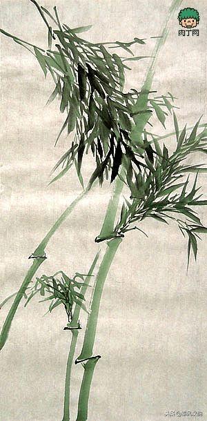 第一步 .画竹竿三个,竹竿要有粗细深淡变化,区别前后关系。