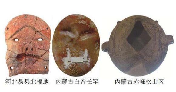 图注:红山遗址区出土的封狶部落面具、珮环、陶罐