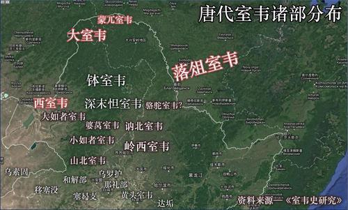 8~9世纪,唐朝人对呼伦贝尔高原一带的室韦人有了更多的了解。据记载,俱伦泊(今呼伦湖)“四面皆室韦”。西南有乌素固部落,其东有移塞没部落。河(今绰尔河)之南有塞曷支部落。其东有和解部落、乌罗护部落、那礼部落。在这些部落的东北有山北室韦。其北有小如者室韦、婆莴室韦。此外还有岭西室韦和人户众多的黄头室韦。望建河(今额尔古纳河)畔有大室韦、蒙兀室韦、落坦(一作“俎”)室韦。“蒙兀”是蒙古一称在中国历史文献中的最早记载。