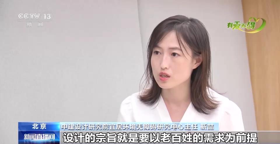 中建设计研究院宜居环境无障碍研究中心主任 靳喆:设计的宗旨要以老百姓的需求为前提。国家(无障碍坡道坡度)标准要求是1:12,咱们肉眼可能看不出太大的变化,都是坡道,但是1:8轮椅上都特别费劲,到1:12我们进行测试的时候发现我们使用是很舒适的。所以说,基于人的需求,才能更合理。