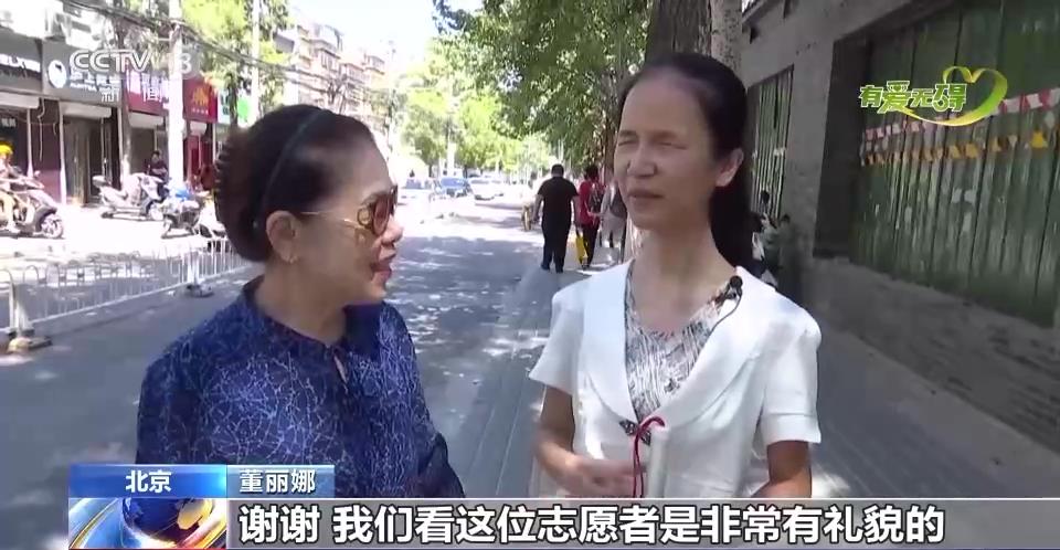 这位志愿者是非常有礼貌的。她首先触碰一下视障人士的胳膊,表示在跟她说话;其次她问“需要我的帮助吗?”大家要注意,千万不要直接拉着盲人朋友的盲杖往前走,或者直接说,“来,跟我走。”这都是不太合理也不太礼貌的。一般情况之下,视障朋友都会很愿意跟志愿者走一段路。