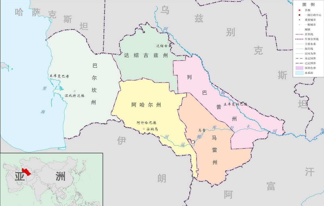 土库曼斯坦是位于中亚西南部的内陆国,是世界上最干旱的地区之一,人口500万,面积49.12万平方公里,是仅次于哈萨克斯坦的面积第二大中亚国家,靠近里海的海岸线有1768公里长,货物经水路出口须经过俄罗斯的伏尔加河和顿河。
