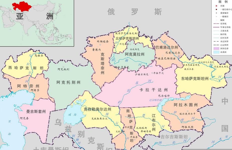 哈萨克斯坦是世界最大的内陆国,哈萨克斯坦面积为272.49万平方公里,约占地球陆地表面积的2%,领土横跨亚欧两洲,以乌拉尔河为洲界。国境线总长度超过1.05万千米。