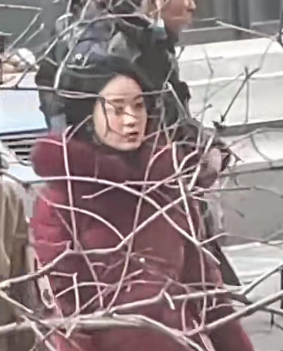 网友偶遇赵丽颖拍戏,穿玫红色棉服素颜出镜,脸蛋圆润被指像大妈